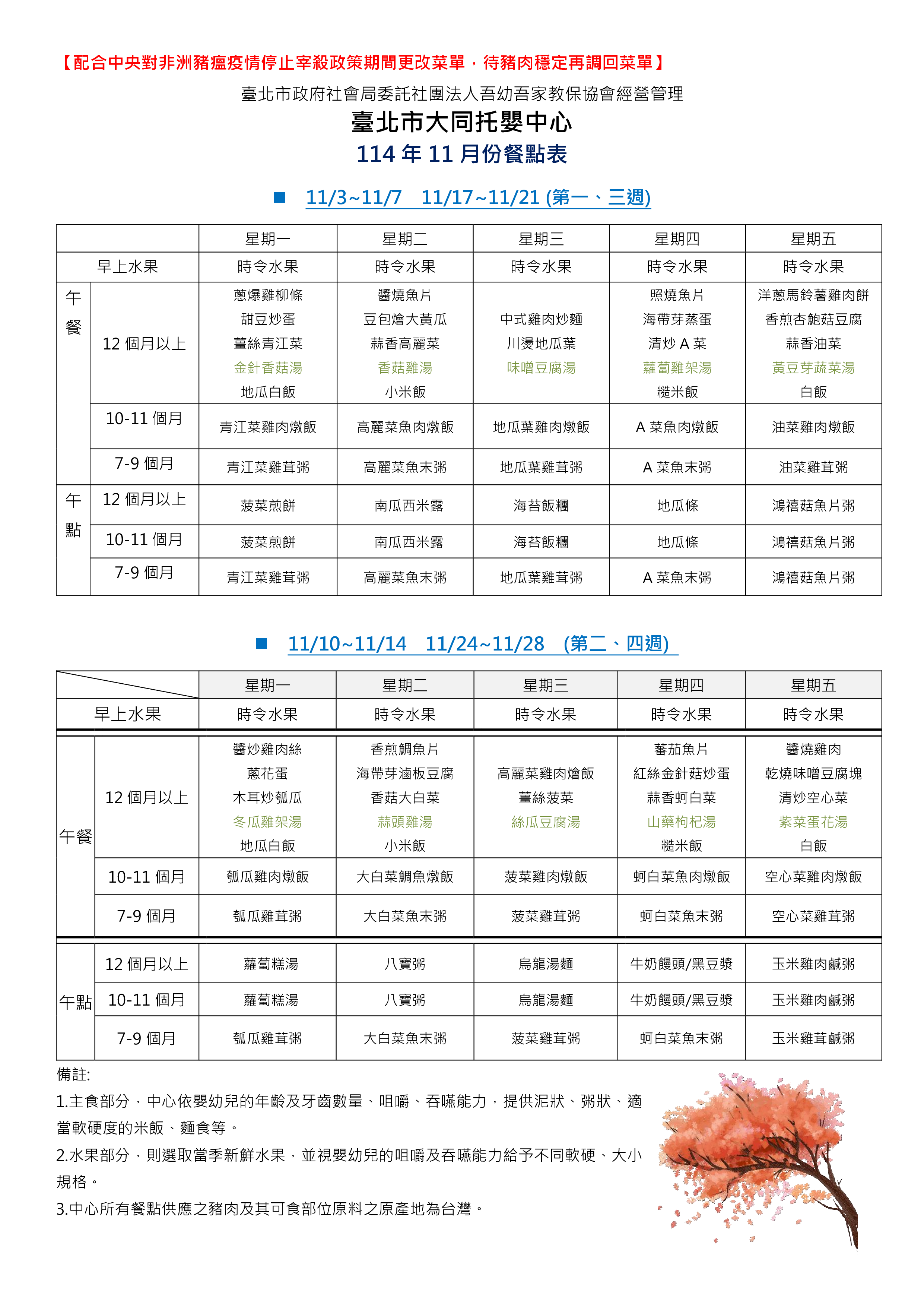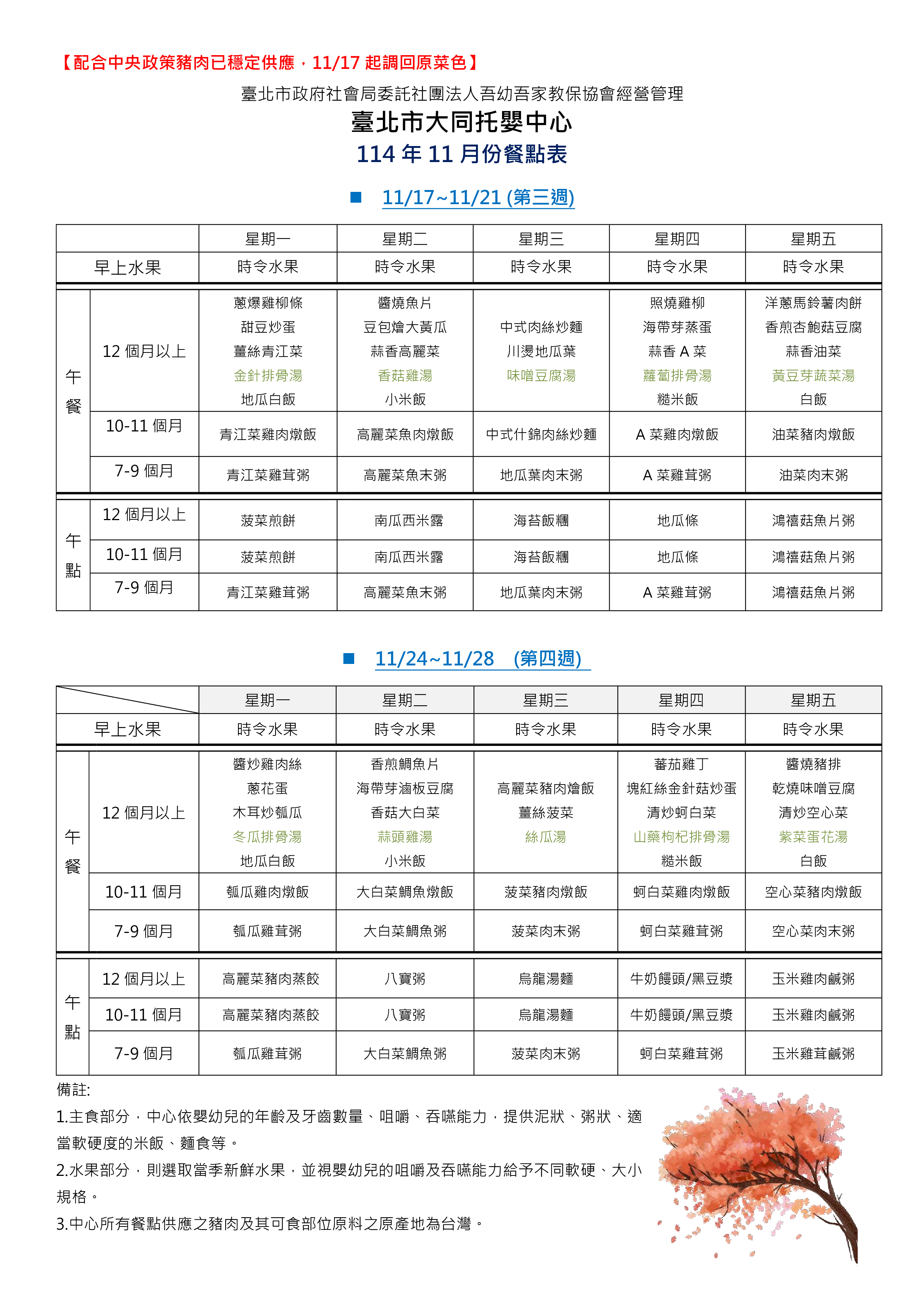 114年11月餐點表